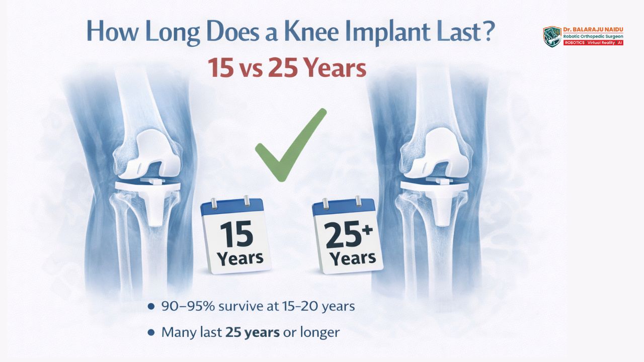 How Long Does a Knee Implant Last? 15 vs 25 Years Explained – By Dr. Balaraju Naidu, Robotic Orthopedic Surgeon, ONUS Robotic Hospitals
