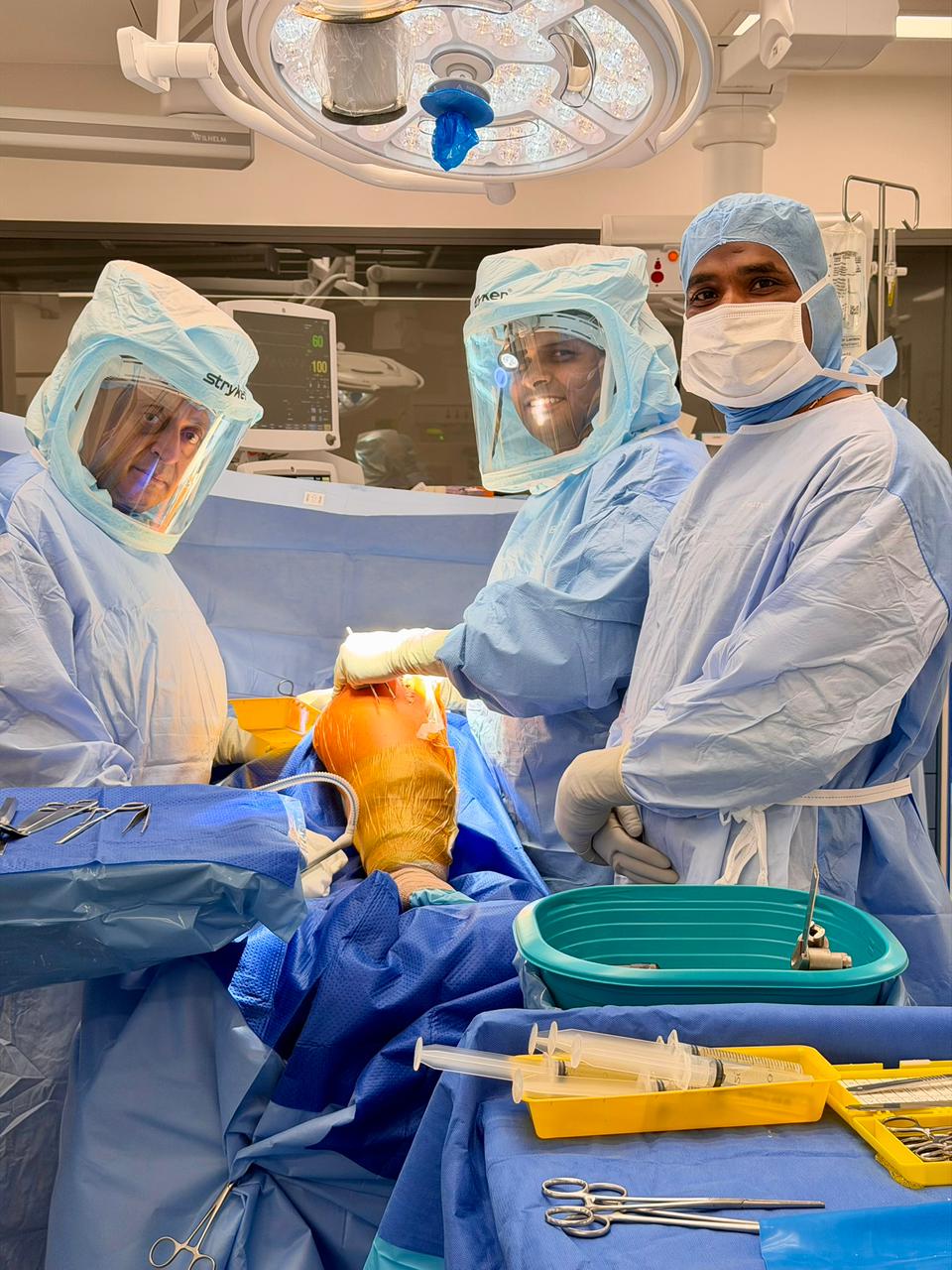 During this academic visit, Dr. Naidu had the opportunity to learn under the mentorship of Prof. Dr. Jegan Krishnan and Dr. Sunil Reddy, both highly respected orthopedic surgeons known for their expertise in complex joint replacement procedures.