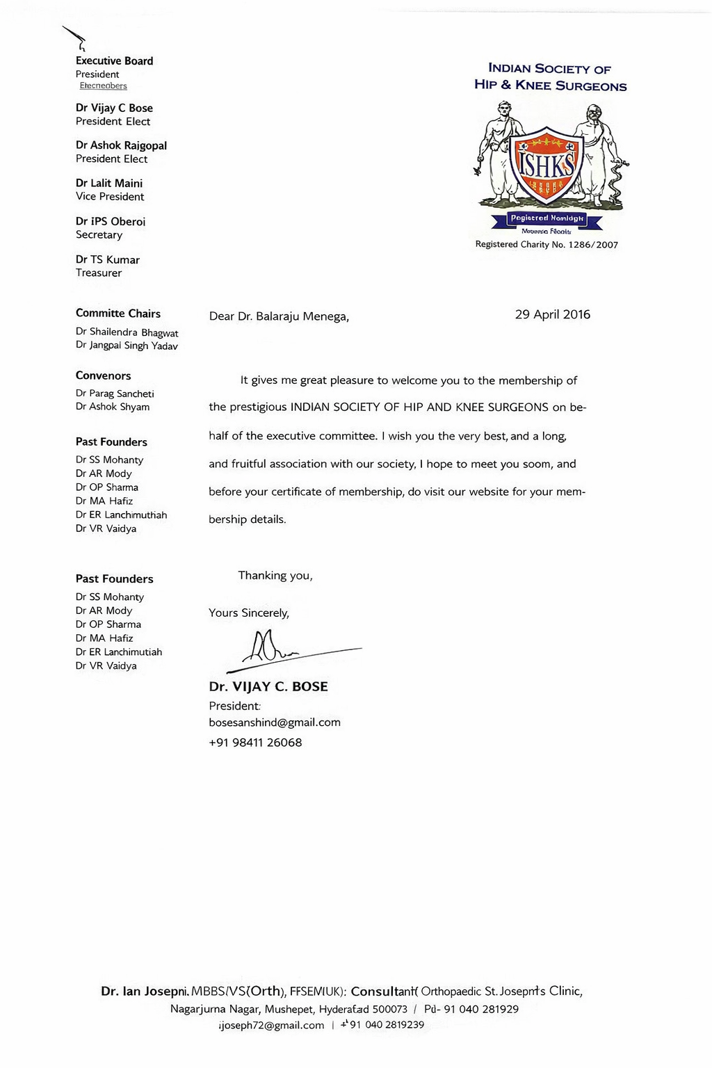 Indian Society of Hip & Knee Surgeons β Membership Confirmation