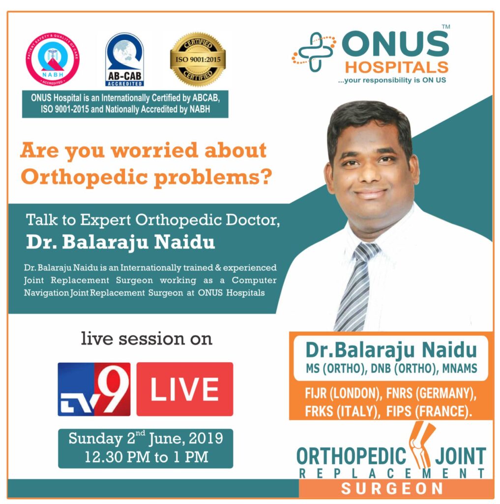 Dr. Balaraju Naidu, leading robotic orthopedic surgeon and Founder of ONUS Robotic Hospitals, shared valuable insights in a TV9 Telugu interview about modern knee replacement treatments. In this discussion, he explains the latest advancements in knee replacement surgery, improved implant technologies, and how minimally invasive techniques help patients recover faster and return to an active life.