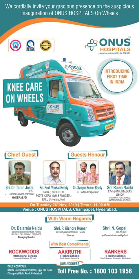 ONUS Hospitals proudly inaugurated “ONUS Hospitals on Wheels” on 26th November 2019 (Tuesday) at 11:00 AM, marking a historic milestone in community-based orthopedic healthcare delivery in India.