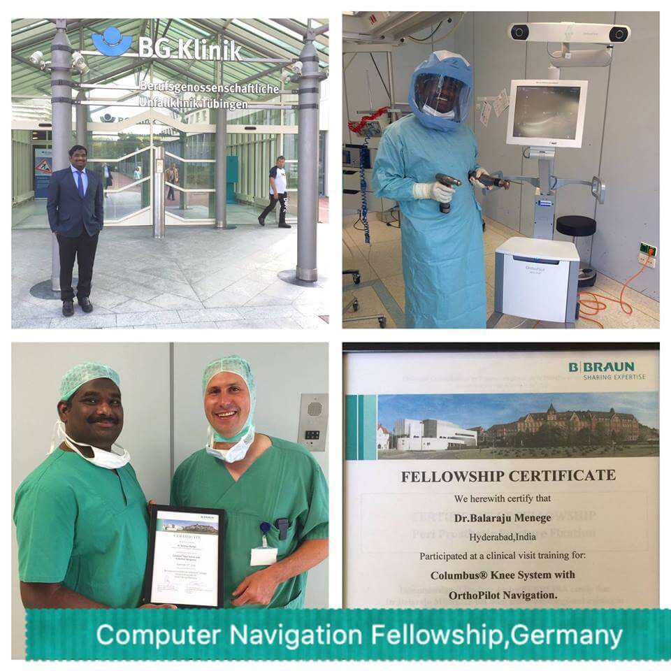 Dr. Balaraju Naidu completed an advanced Fellowship in Computer Navigation Joint Replacement Surgery in Tübingen, Germany, focusing on precision-guided knee replacement using state-of-the-art navigation technology.