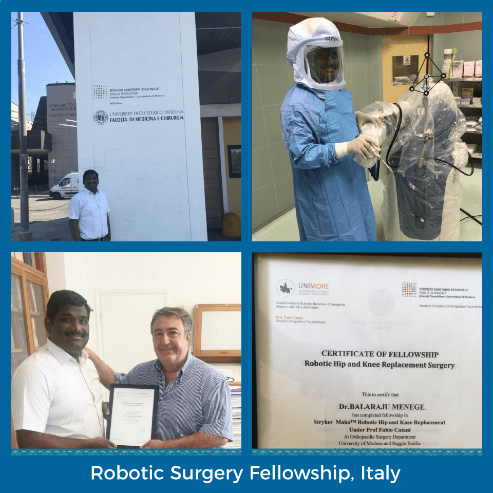Dr. Balaraju Naidu completed an advanced International Fellowship in Robotic Joint Replacement Surgery at: