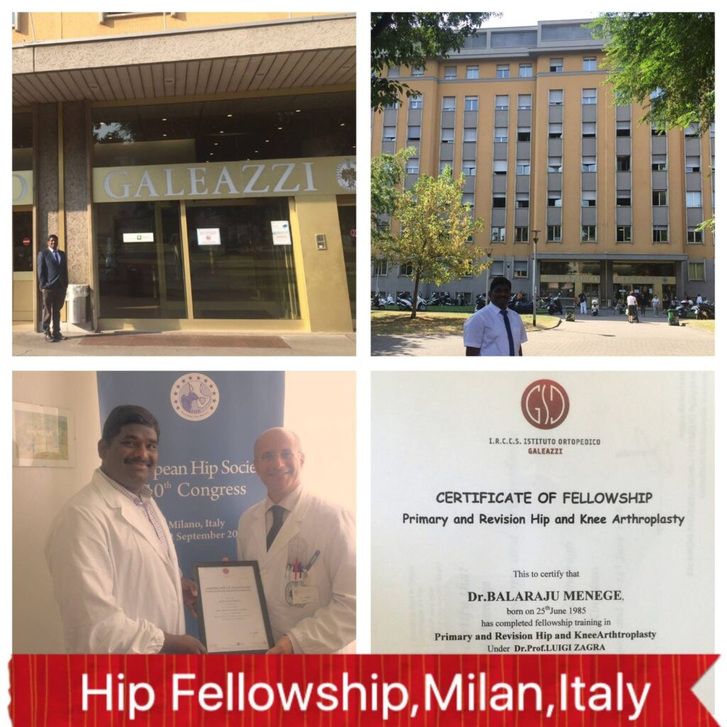 Dr. Balaraju Naidu completed an advanced International Hip Fellowship in Milan, Italy, gaining specialized expertise in Primary and Revision Hip & Knee Arthroplasty at the prestigious: