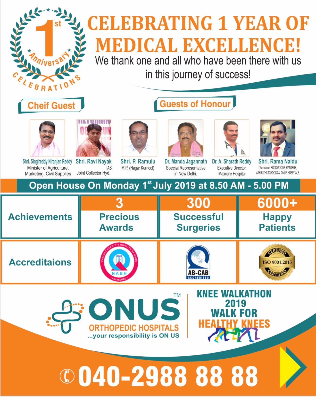 To commemorate one year of excellence, ONUS Hospitals organized a Knee Walkathon featuring: