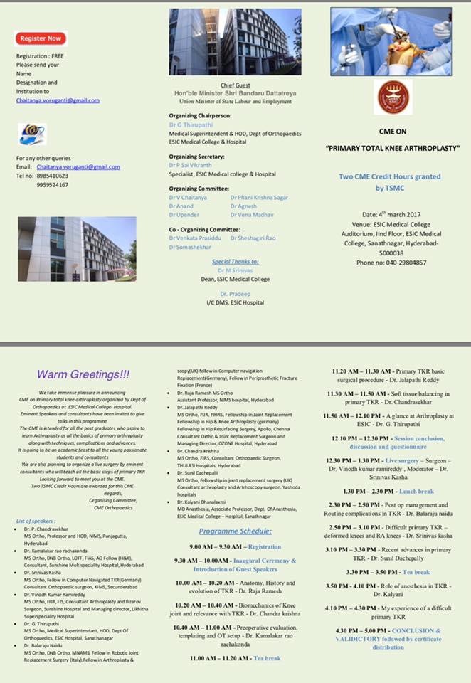 Dr. Balaraju Naidu delivered a professional presentation on Knee Replacement Surgery at ESI Medical College & Hospital, followed by an engaging panel discussion with doctors and medical professionals.