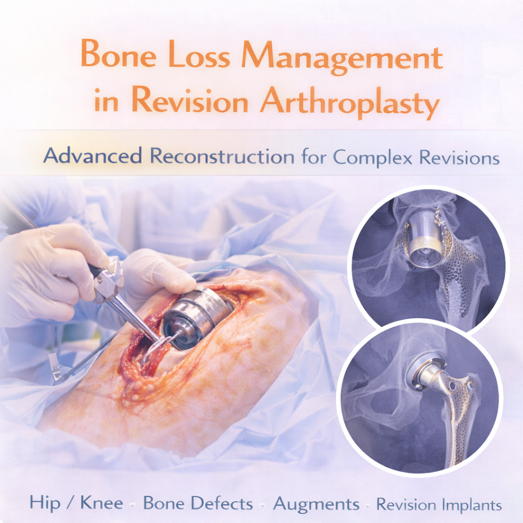 Bone Loss Management in Revision Arthroplasty is a highly specialized surgical approach used during revision hip or knee replacement when significant bone deficiency is present. Bone loss may occur due to implant loosening, infection, osteolysis, multiple previous surgeries, or long-standing implant wear.