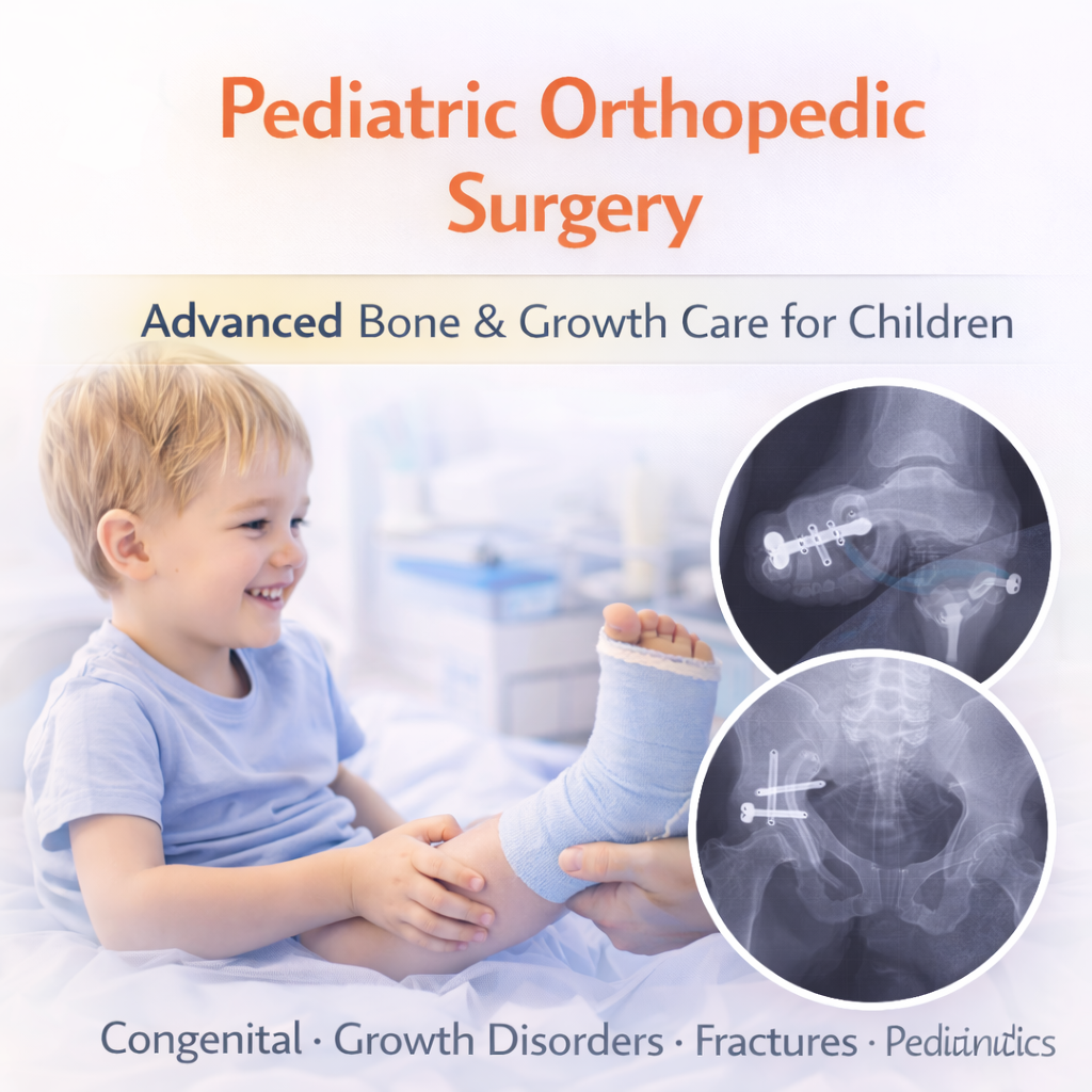 Pediatric Orthopedic Surgery focuses on the diagnosis and treatment of bone, joint, and muscle conditions in infants, children, and adolescents. Children are not just “small adults” — their growing bones require specialized evaluation and age-appropriate surgical techniques.