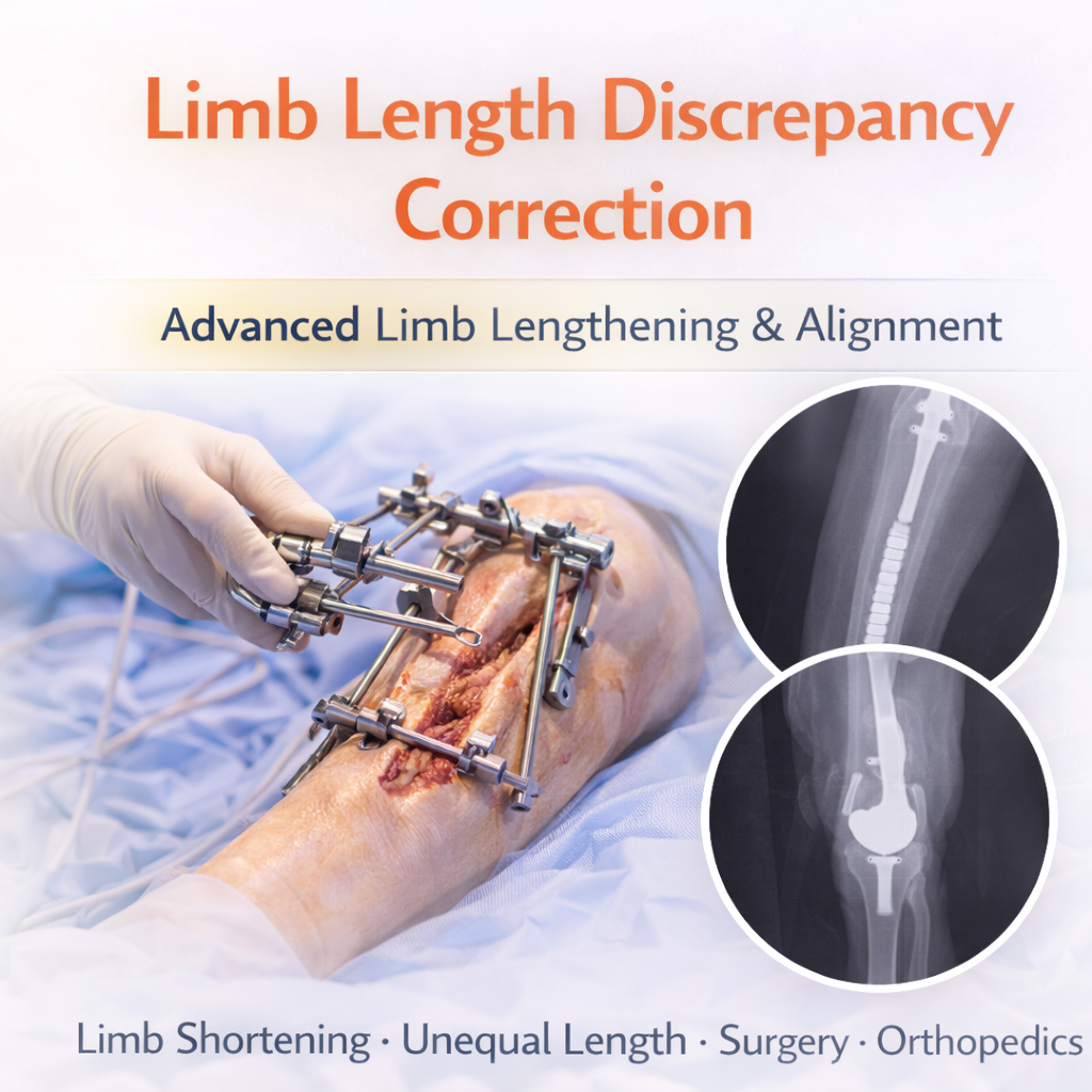 Limb Length Discrepancy (LLD) Correction is a specialized orthopedic procedure performed to correct significant differences in the length of the legs or arms. While small differences are common and often harmless, larger discrepancies can lead to pain, abnormal gait, pelvic tilt, spinal imbalance, and early joint degeneration.