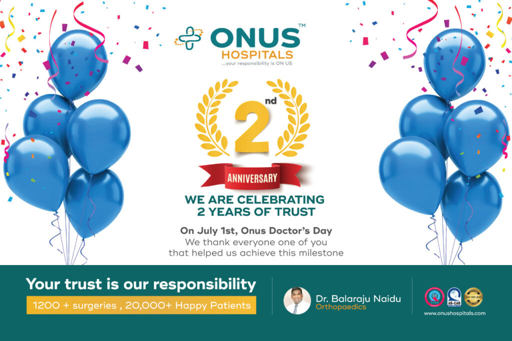 On 1st July 2020, ONUS Hospitals proudly celebrated its 2nd Anniversary, marking an important milestone in our journey of delivering exceptional orthopedic care in Hyderabad.
